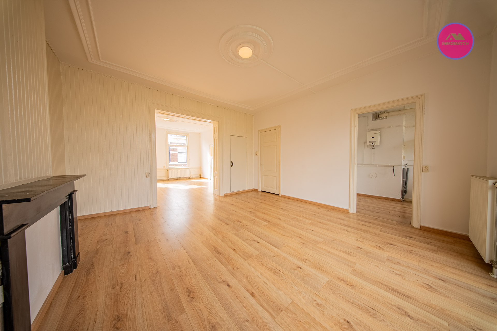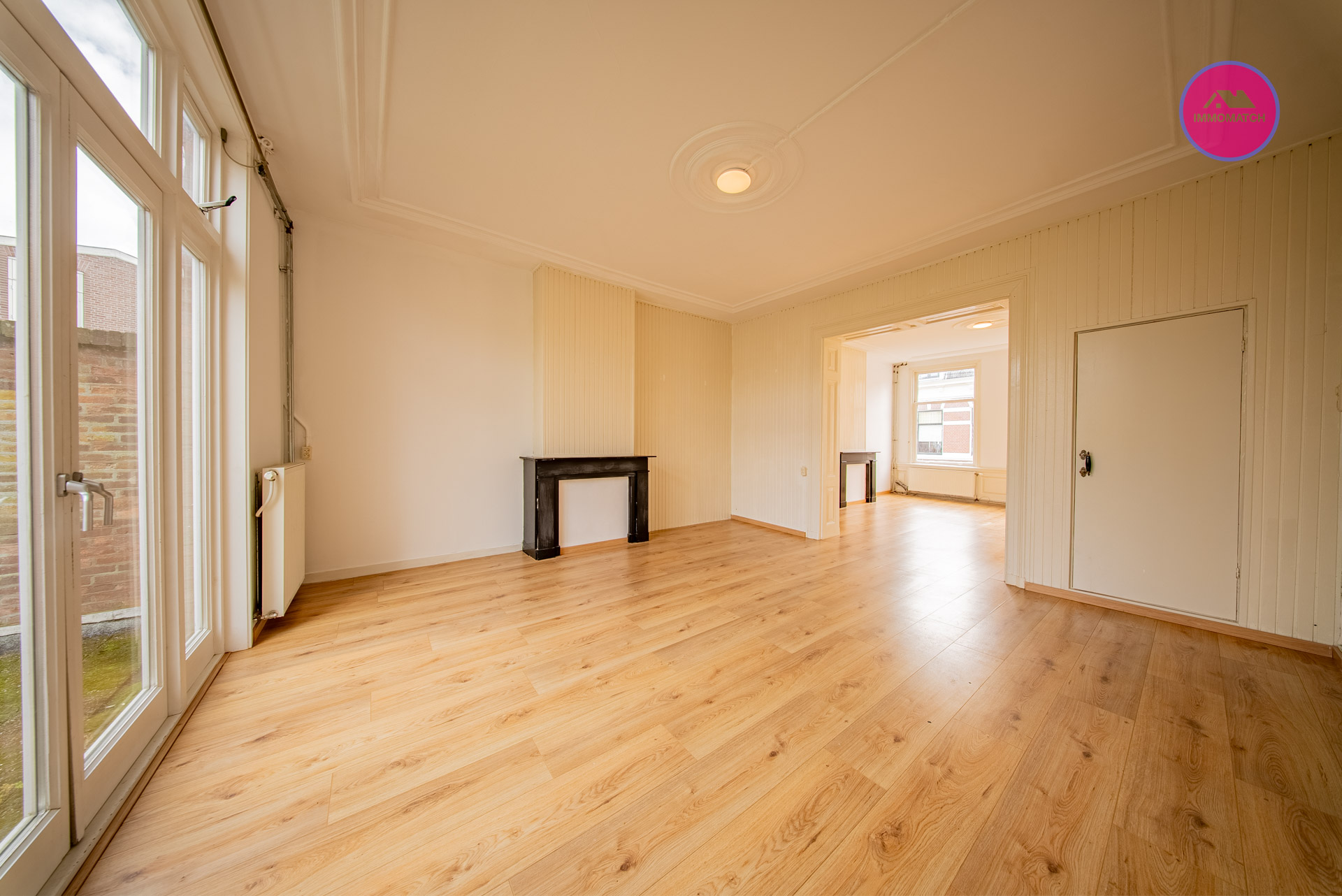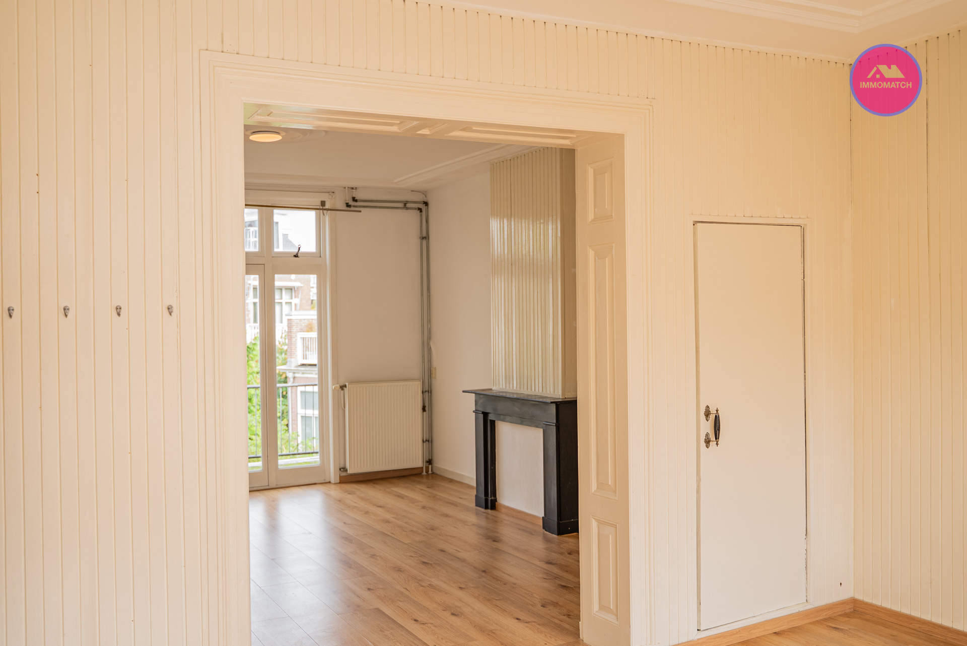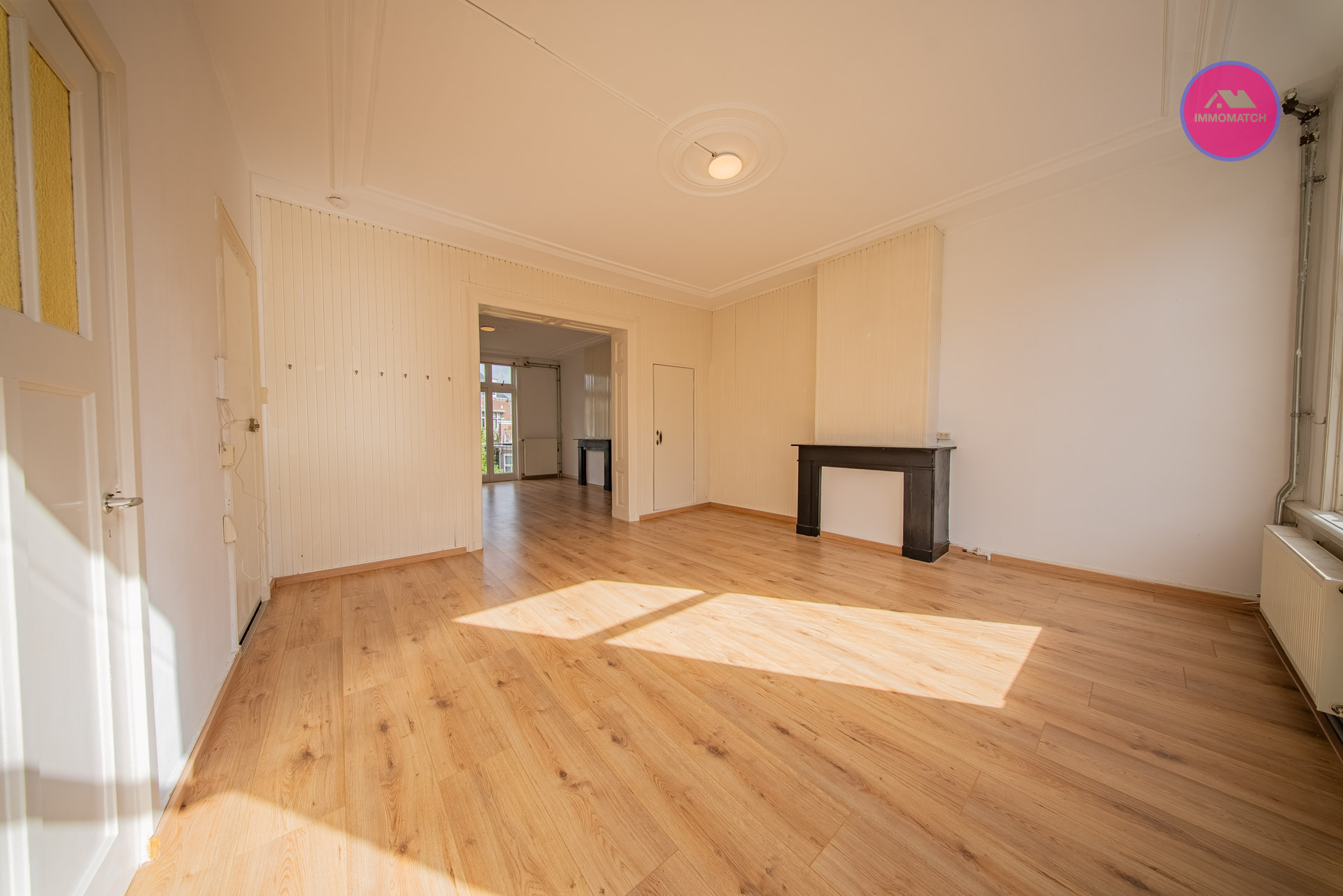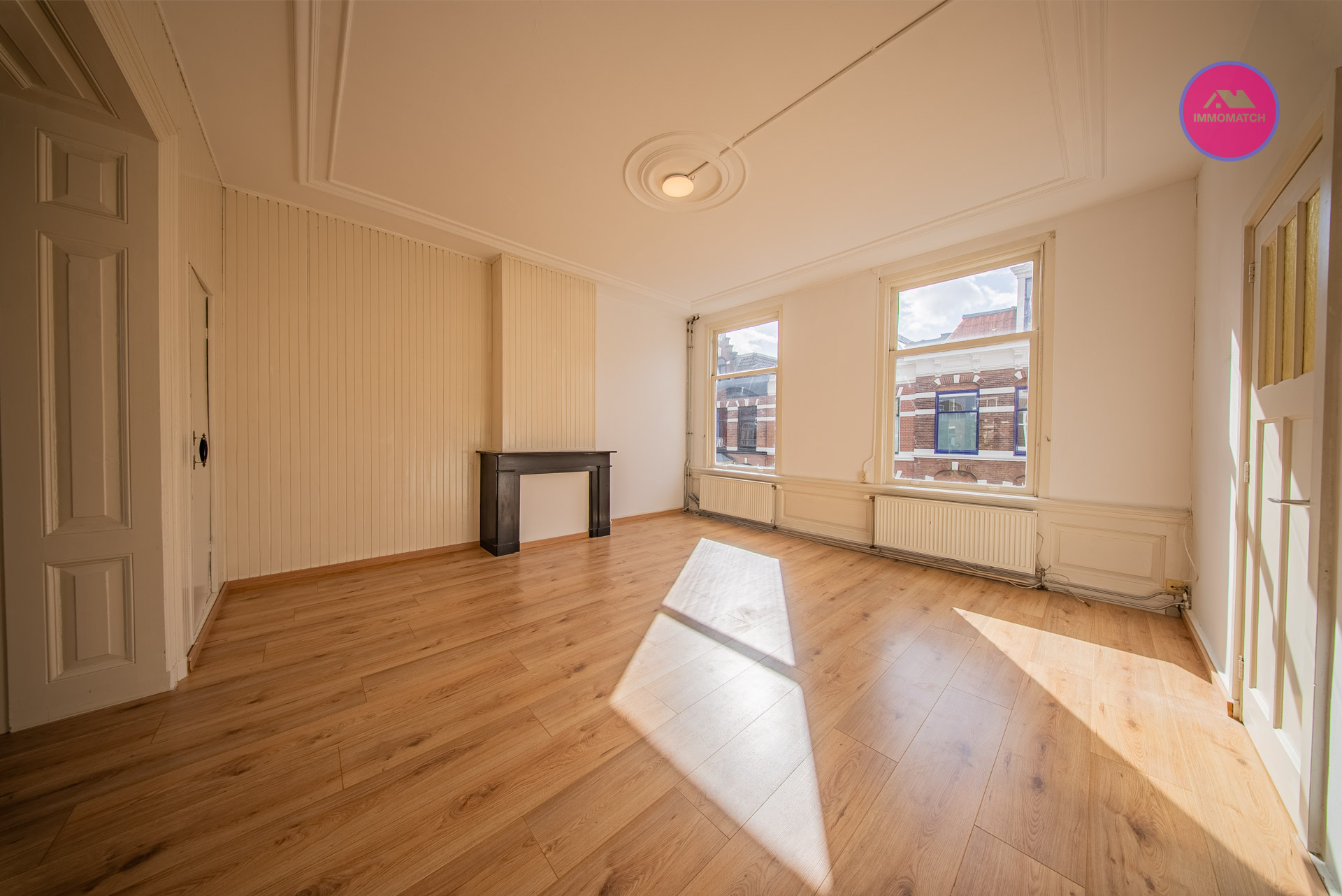 Je komt direct binnen in de lichte woonkamer en suite, voorzien van karakteristieke details en veel lichtinval.
