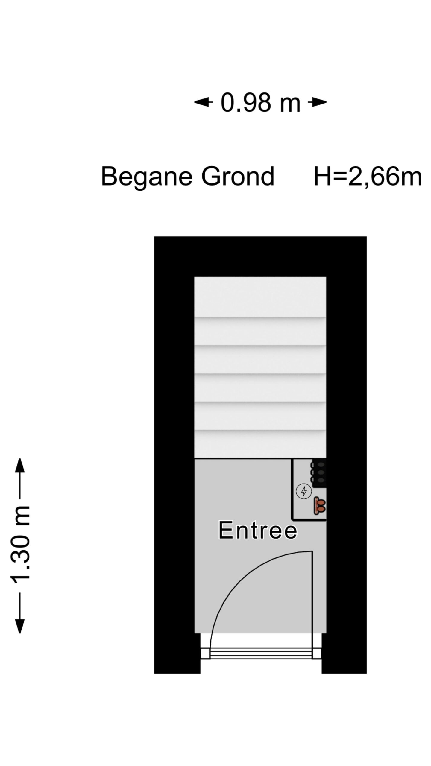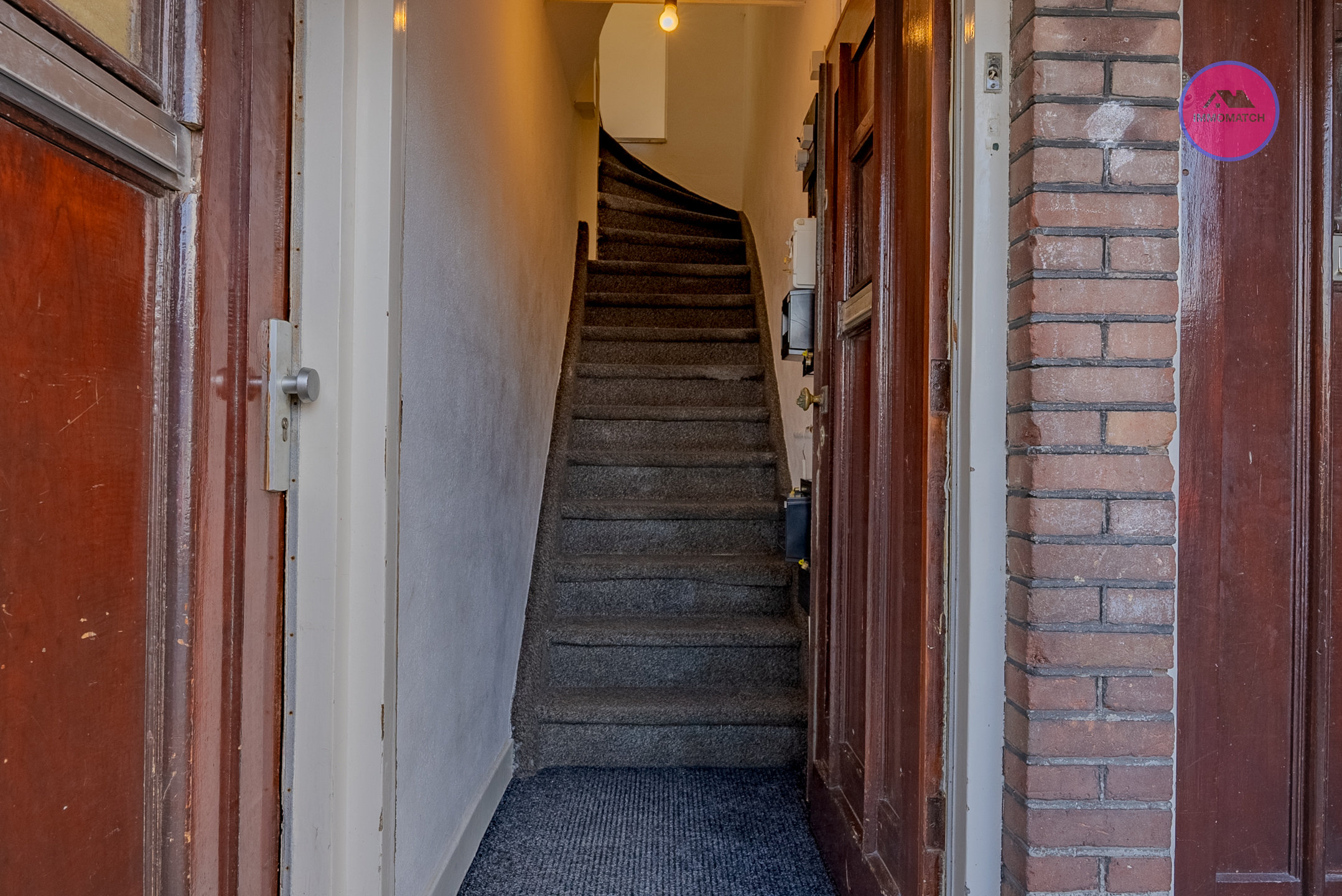 Open portiek, entree met hal en meterkast, trap naar woonverdieping,