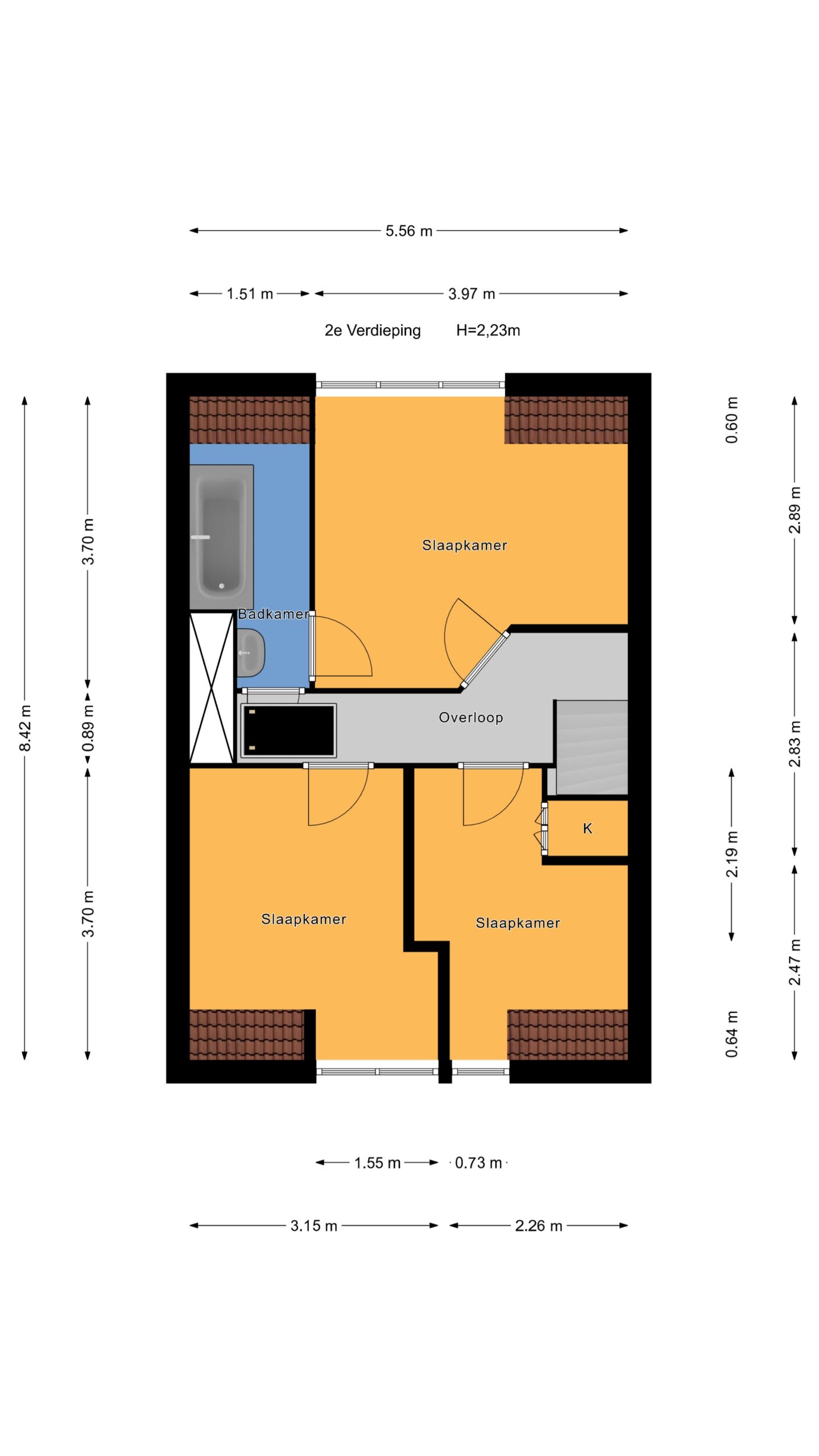 - Overloop met toegang tot de drie slaapkamers