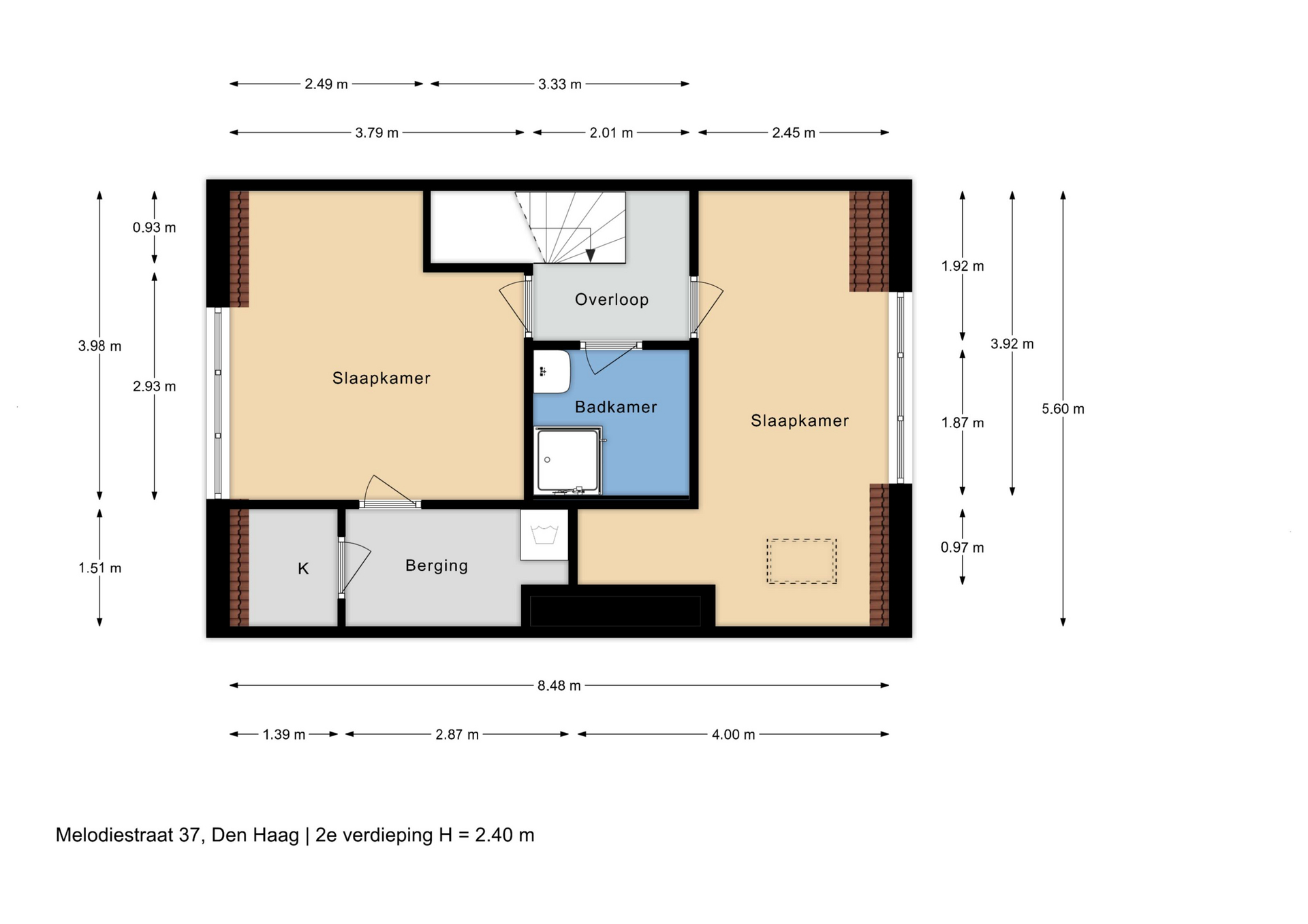 De tweede slaapkamer bevindt zich aan de achterzijde.