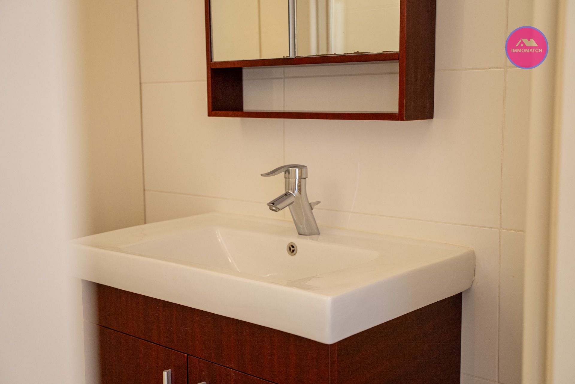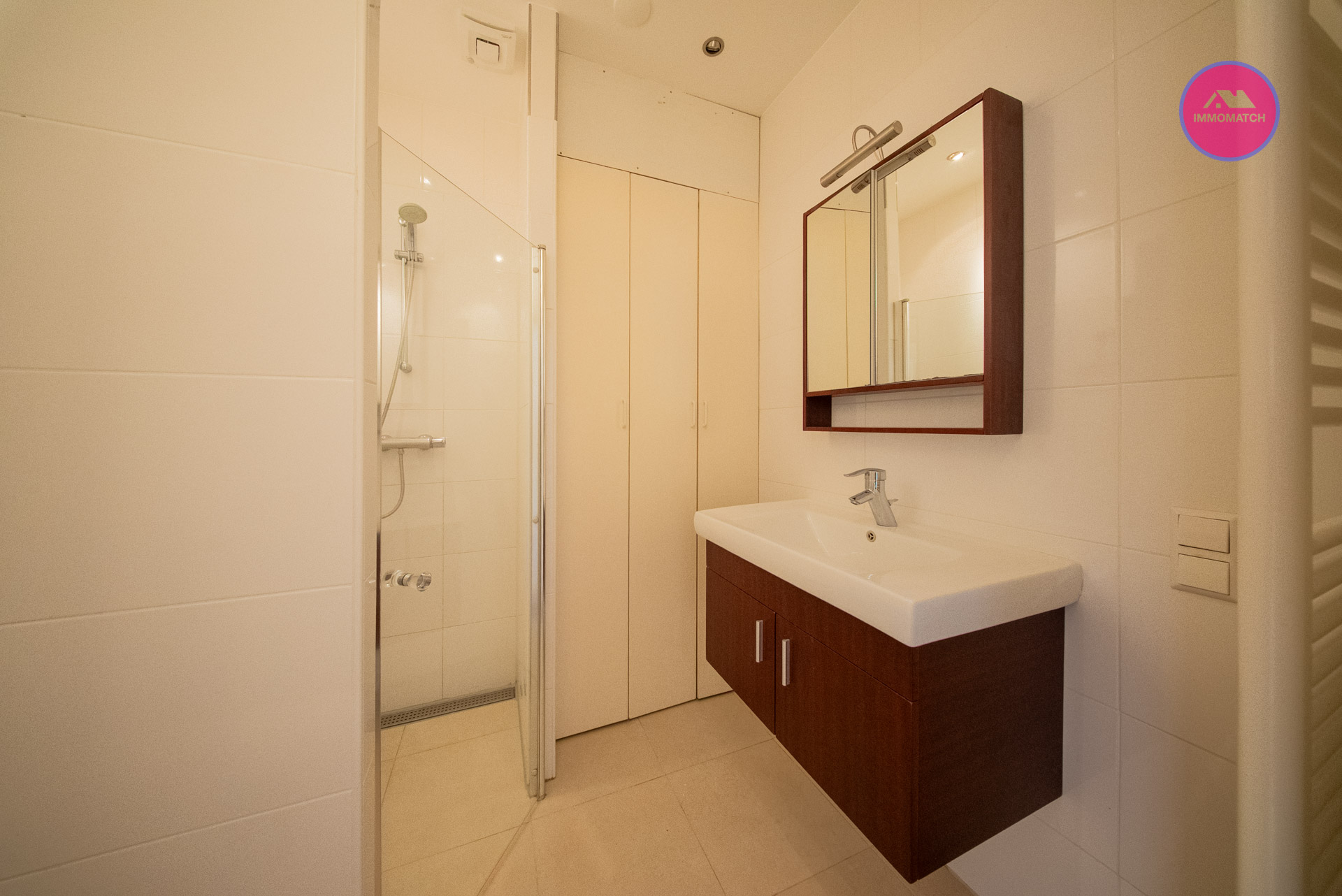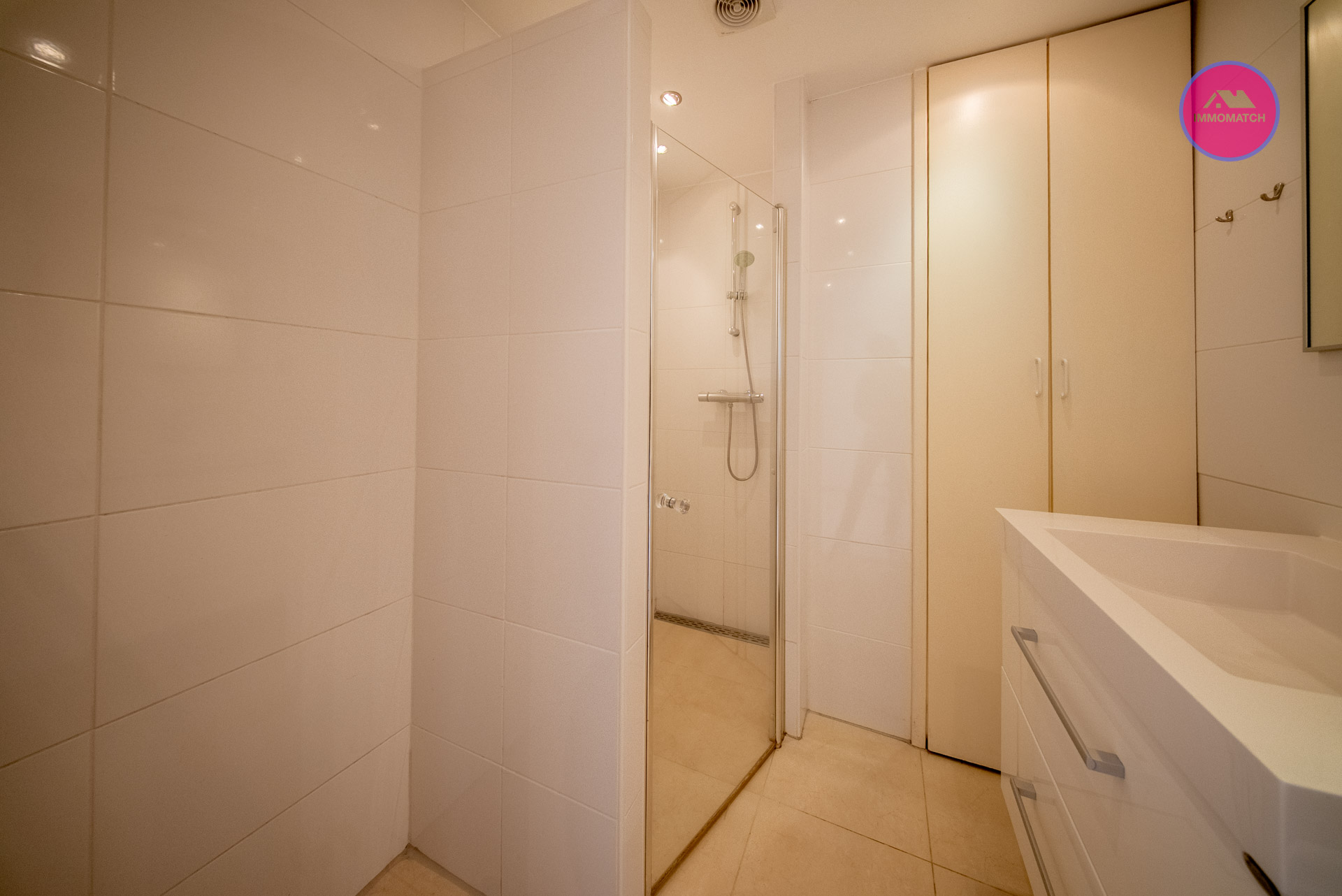 Badkamer voorzien van inloopdouche, wastafelmeubel, wasmachineaansluiting en cv-opstelling.