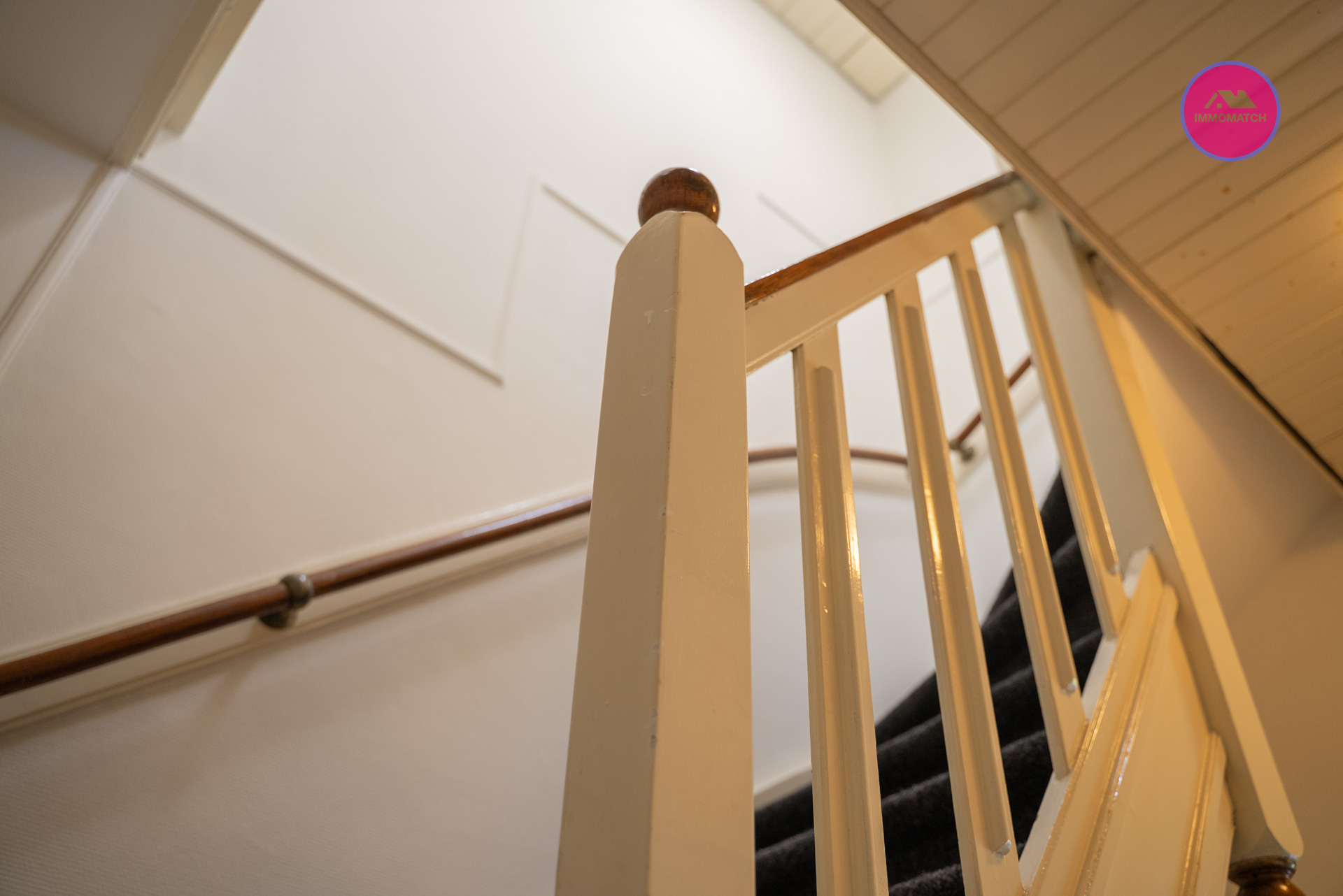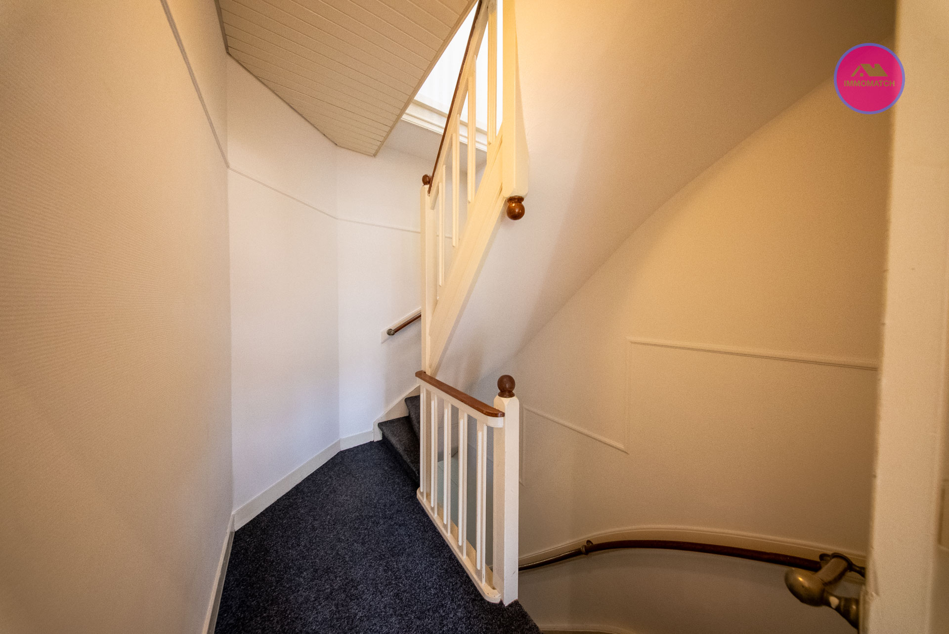 Vanuit de woonkamer leidt een trap naar de ruime vijfde slaapkamer, gelegen in de kapverdieping.