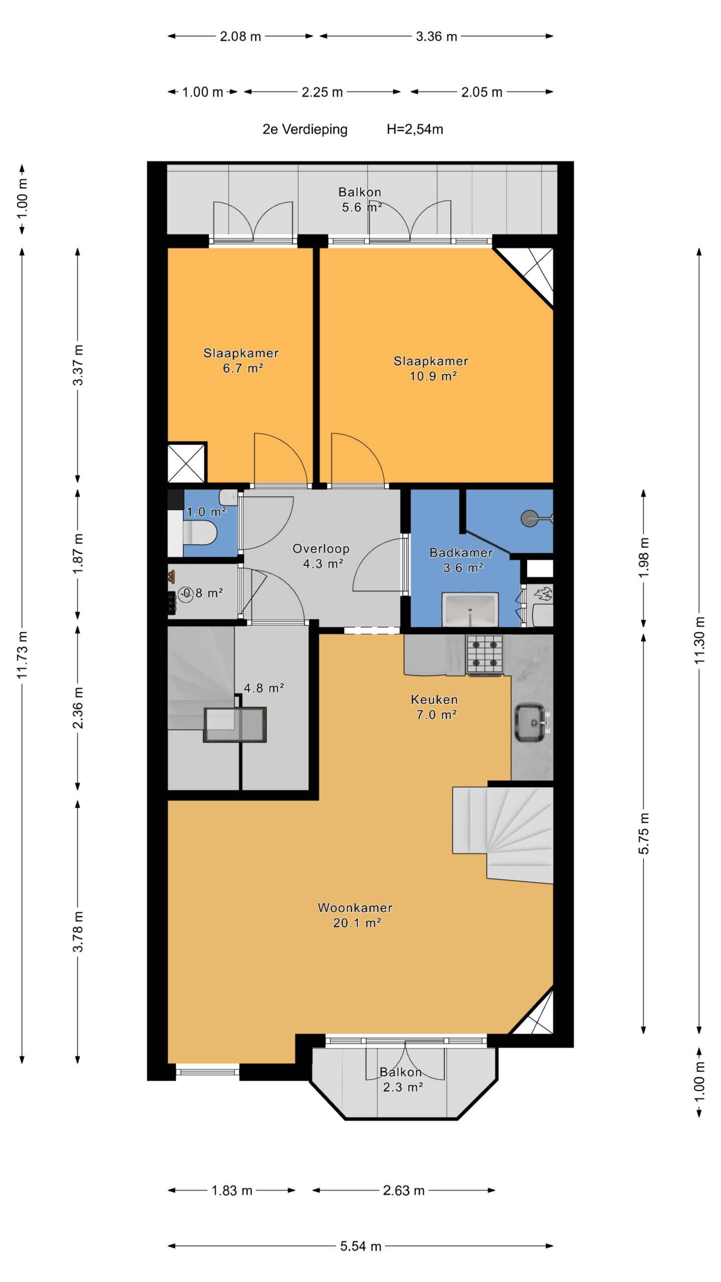 De indeling is vergelijkbaar met de eerste woonlaag.
