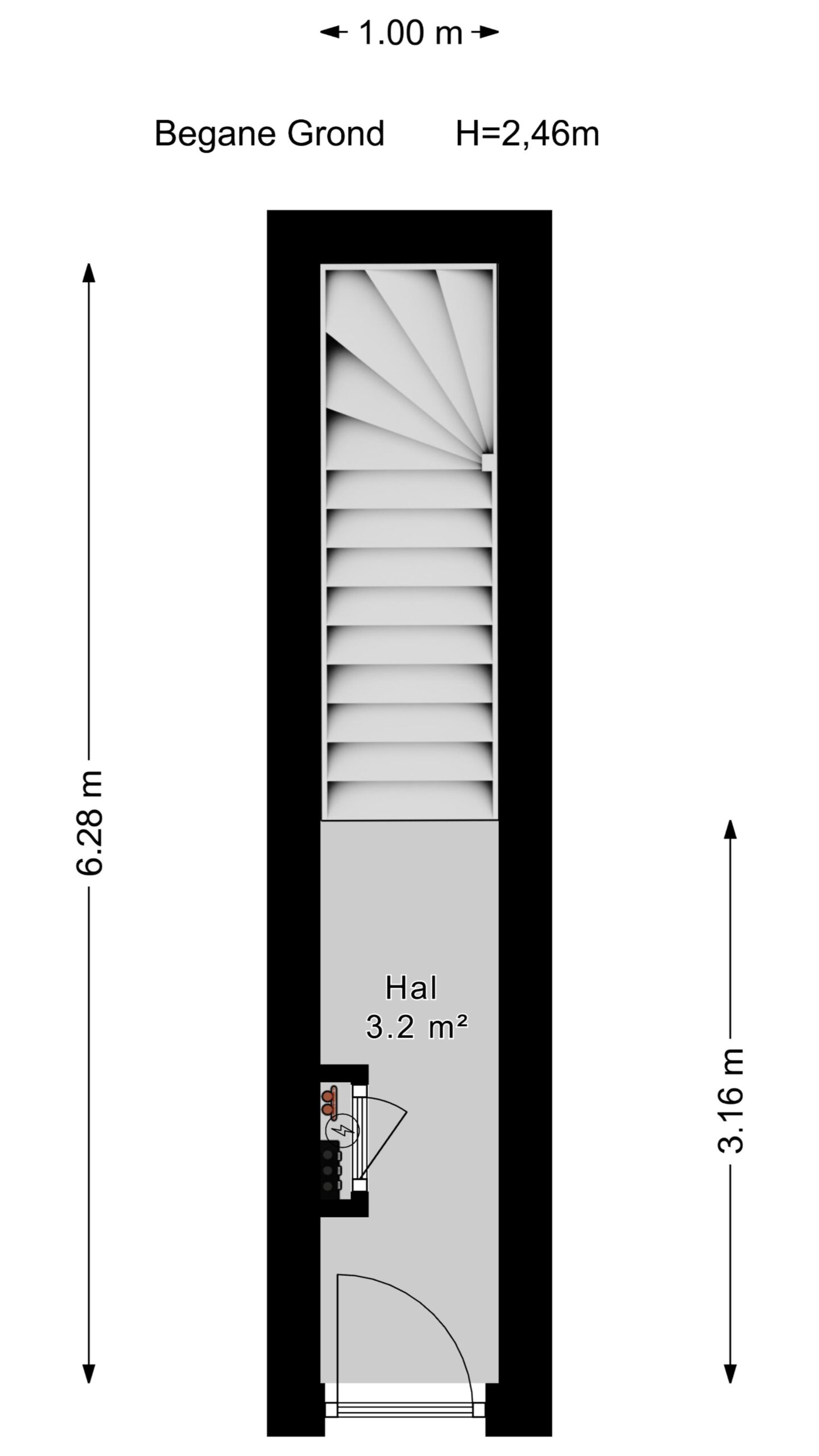 Entree op straatniveau met een ruime hal en trapopgang naar de eerste verdieping.