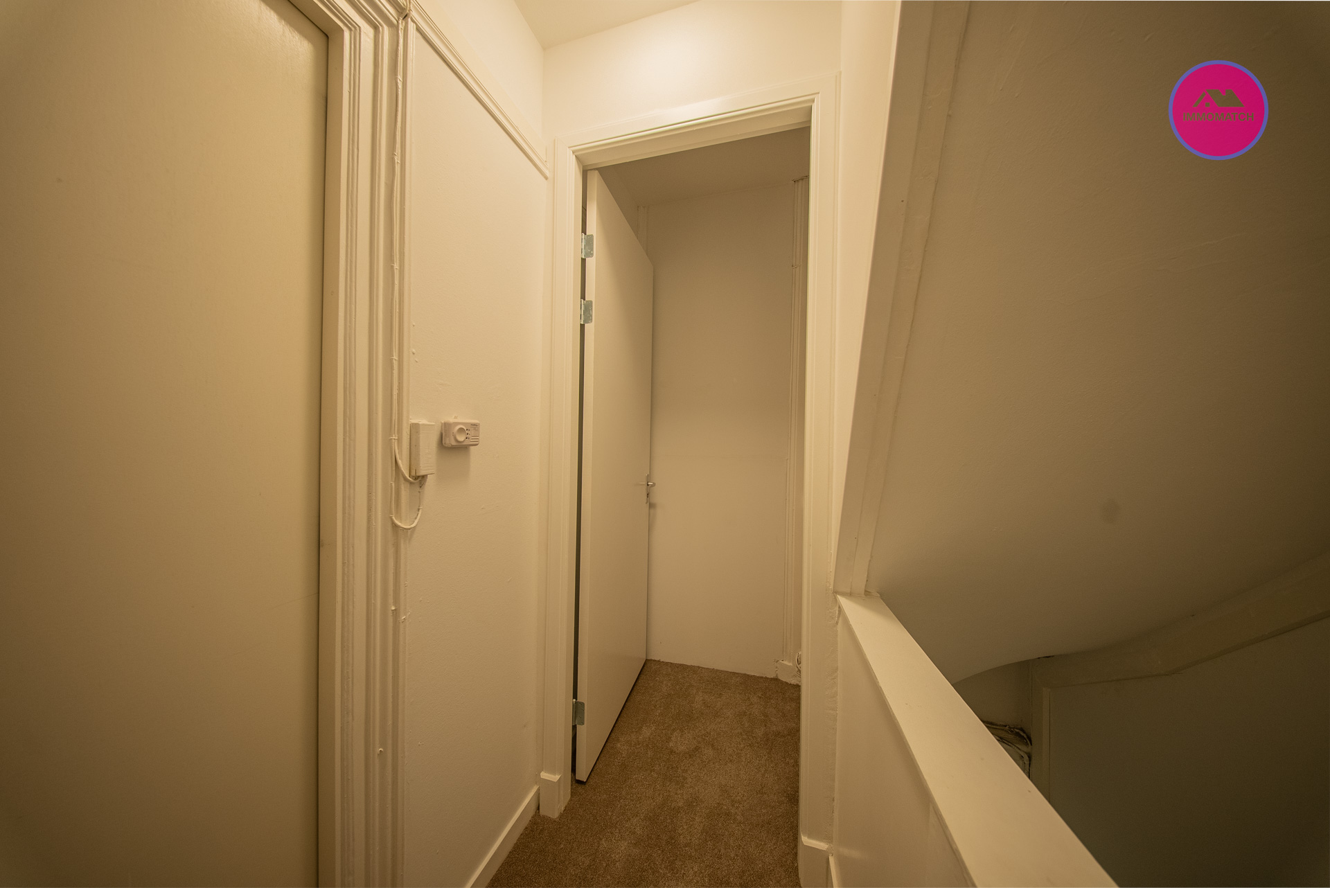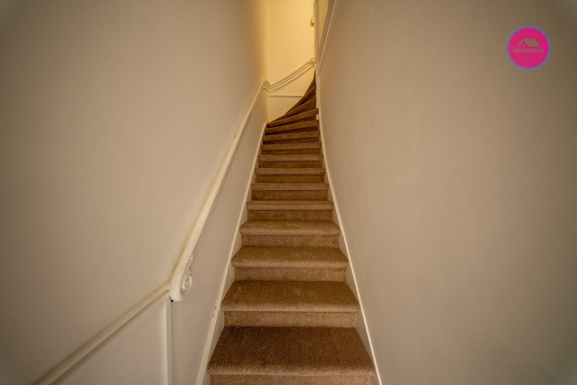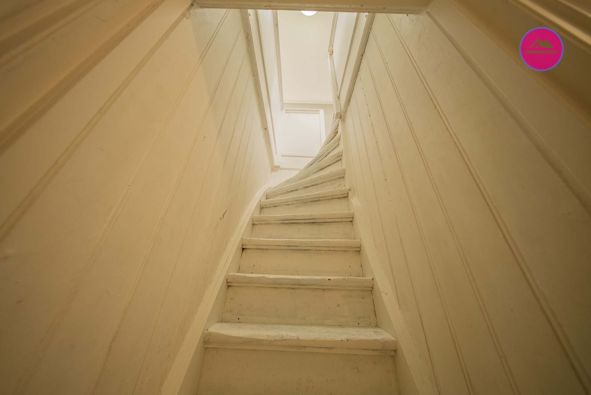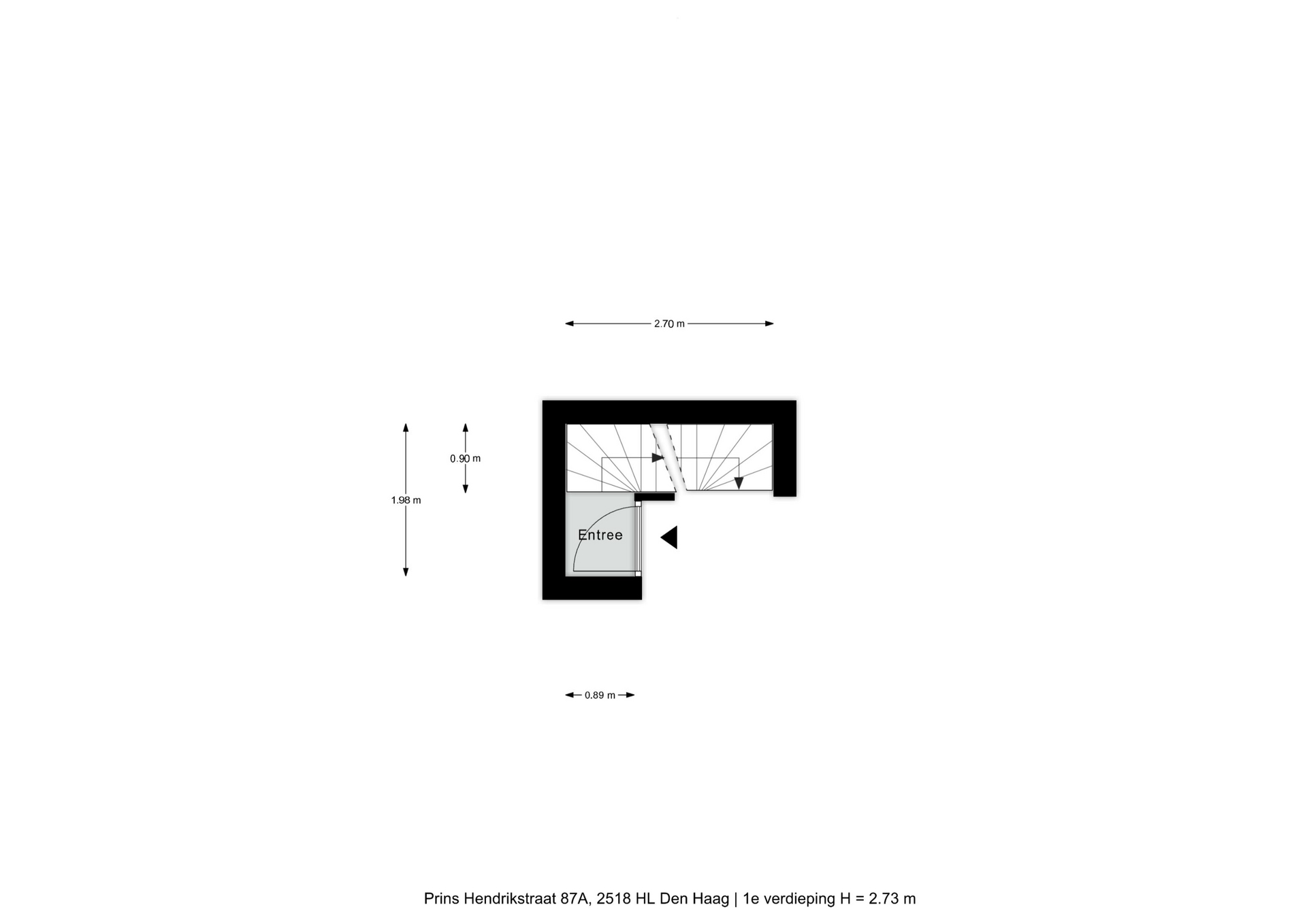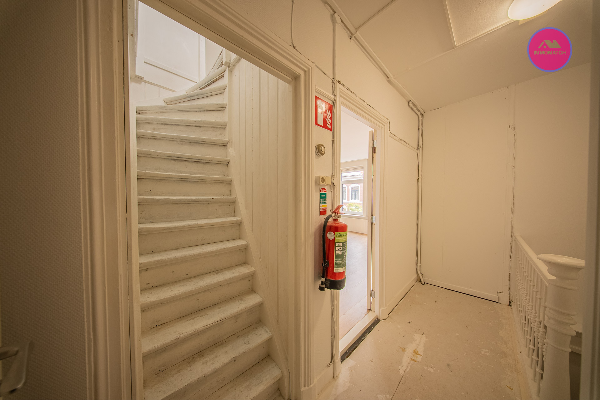 Via de gezamenlijke entree bereik je de trap naar de eerste verdieping waar de entree van nummer 87A is.