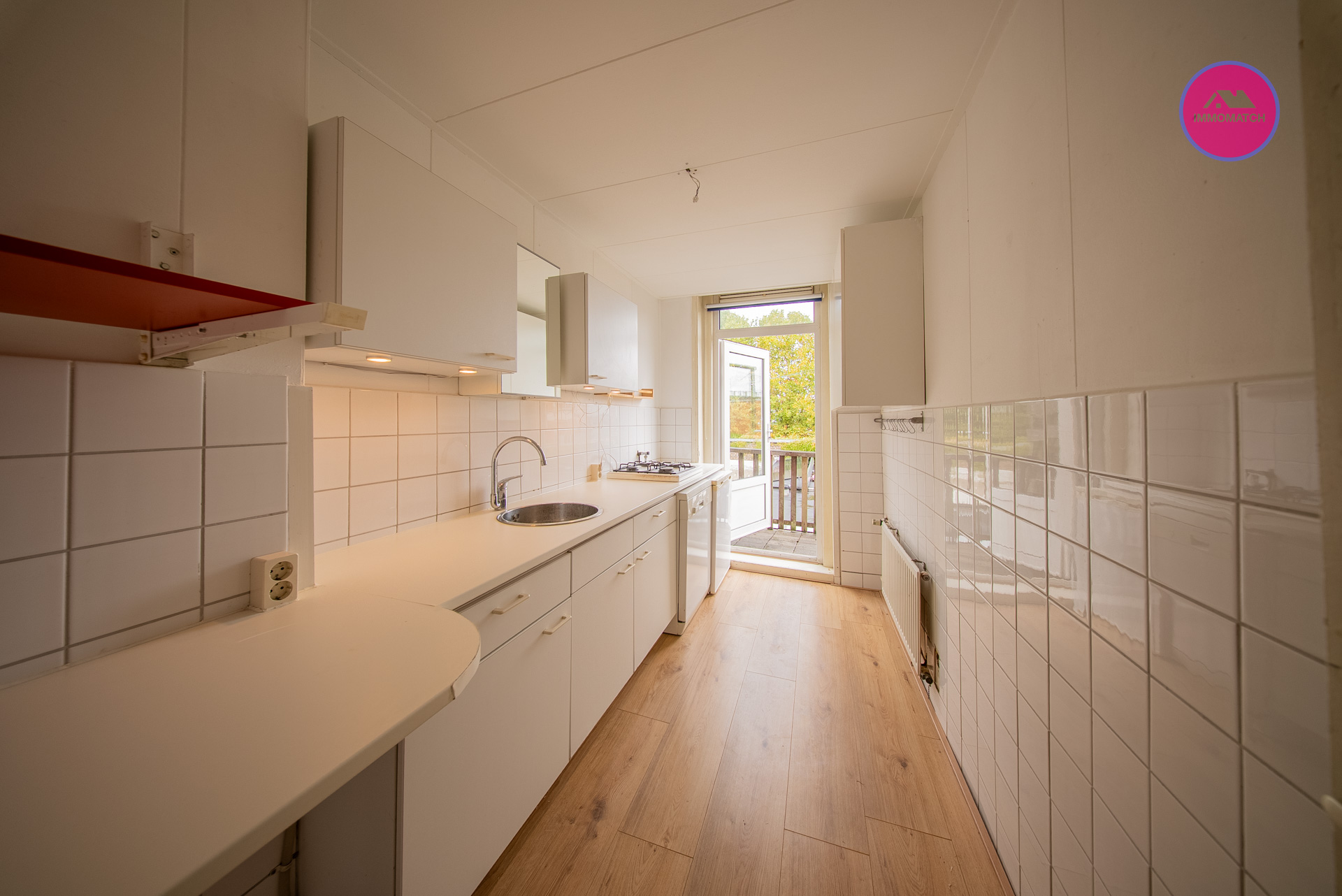 De keuken is praktisch ingericht en biedt toegang tot het ruime balkon (zuidwesten) waar je heerlijk van de middag- en avondzon kunt genieten.